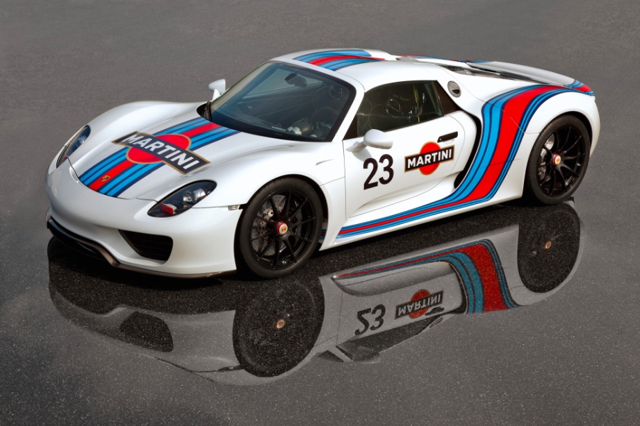 The Porsche 918 Spyder has electric motors which drive the front and rear axles and a 770bhp 4.6 litre V8 driving just the rear wheels.