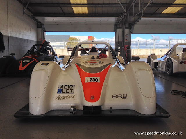 This time I, and a few others, had a garage all to ourselves. Garage 8A, down towards the Copse end. And in it was a Radical SR3 RS, for us to drive round Silverstone.
